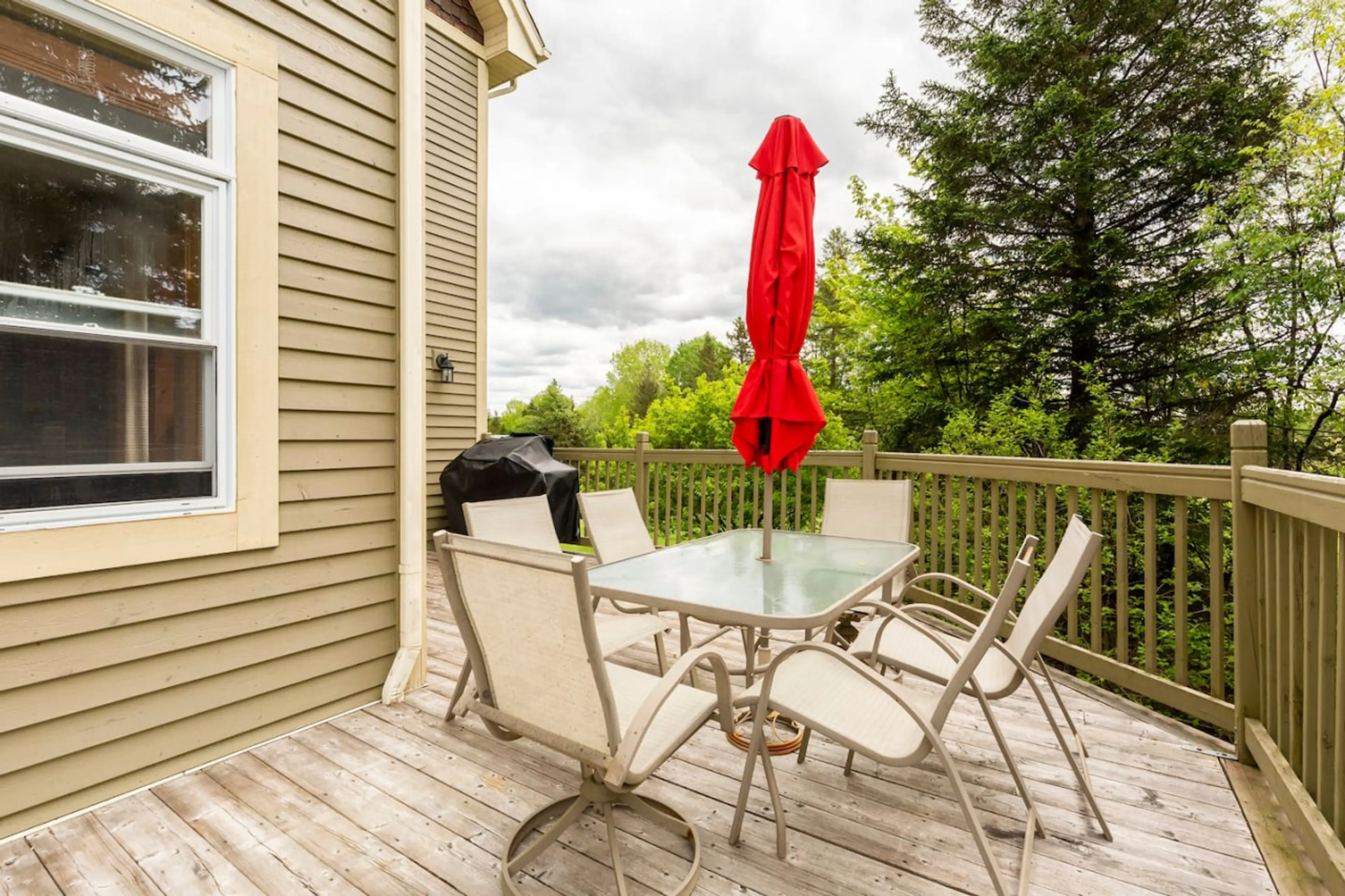 Offrez-vous un magnifique chalet rustique sur le terrain de golf. Une maison à aire ouverte, lumineuse et spacieuse avec une intimité maximale et la nature tout autour! - 3 téléviseurs - 1 lit King, 2 lits Queen, 2 lits jumeaux et 1 canapé-lit - Capacité d'accueil : 10 personnes - Cuisines entièreme...