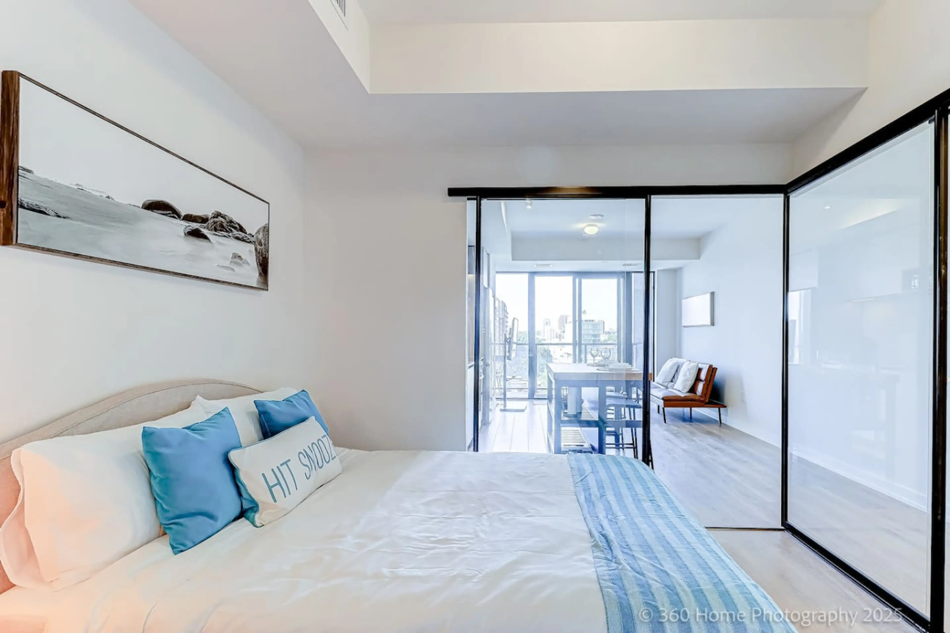 - 1 Bedroom with Queen Bed and ensuite Bath - Spacious Den with Double Bed as a 2nd bedroom - 1 futon sleeper in living room to comfortable sleep 5 - 1 Full Bathroom in Common Area - Smart TV – (Prime & netflix) - Fully stocked kitchen with dishwasher - Keurig Coffee machine - In-Suite Washer & Dry...